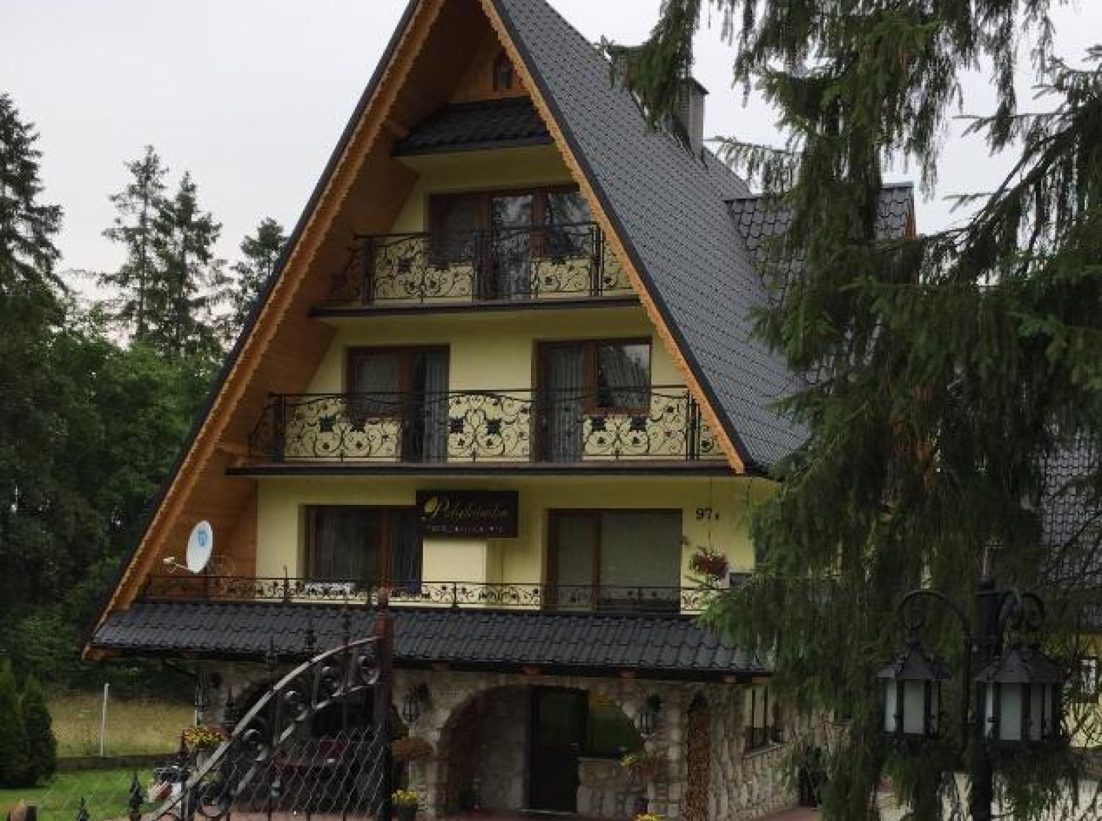 Guests can enjoy mountain views, a terrace, billiard table, outdoor fireplace, ski storage, free parking, and Wi-Fi. Surrounded by forest and a river, the location is peaceful yet convenient — just 9 km from Zakopane, 5 km from Tatra National Park, and..
