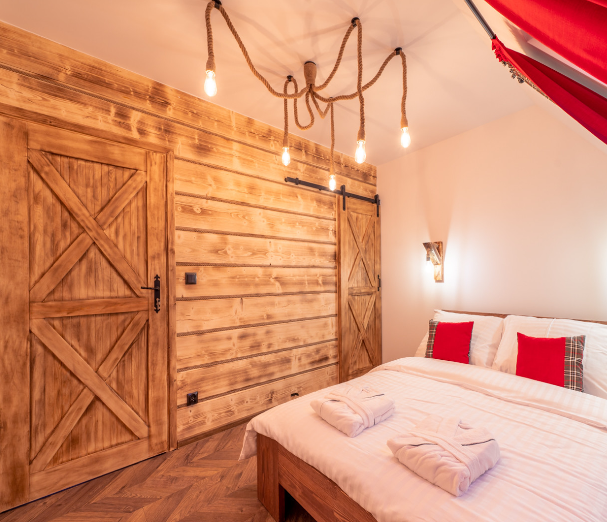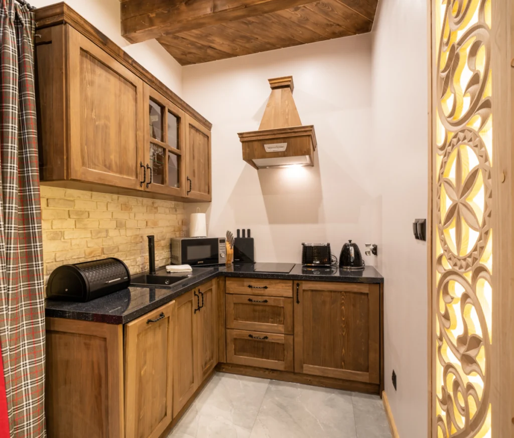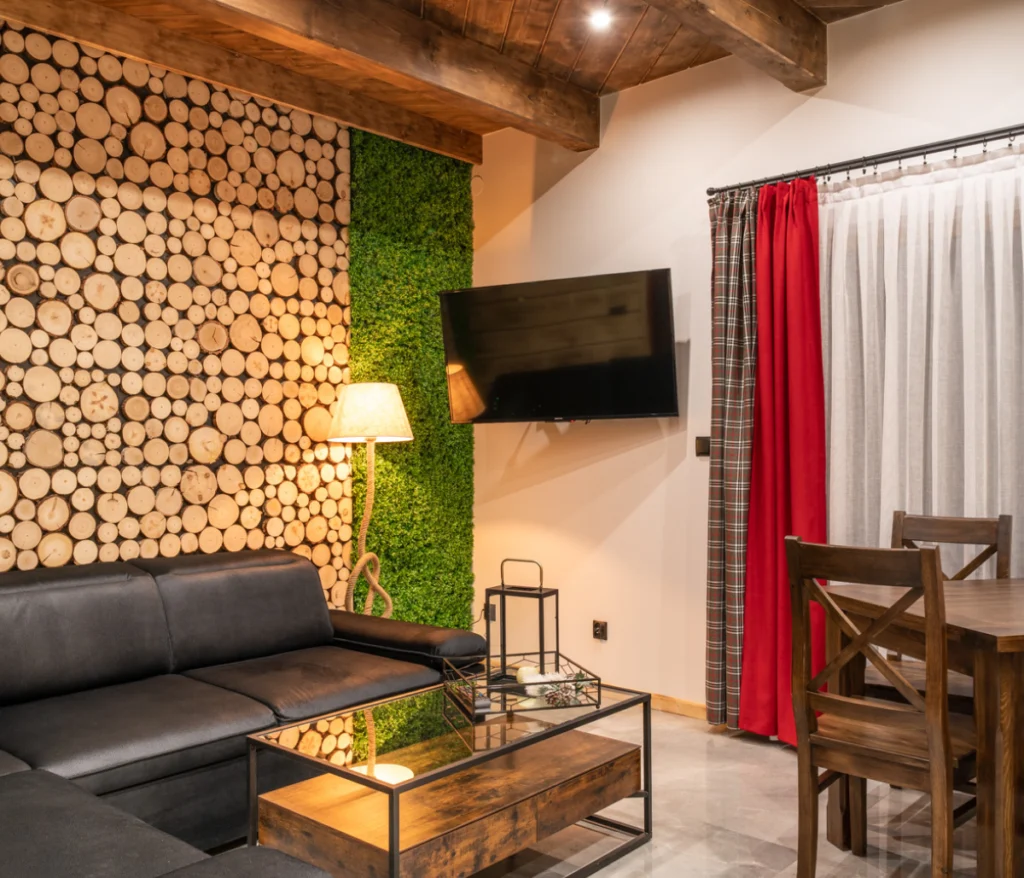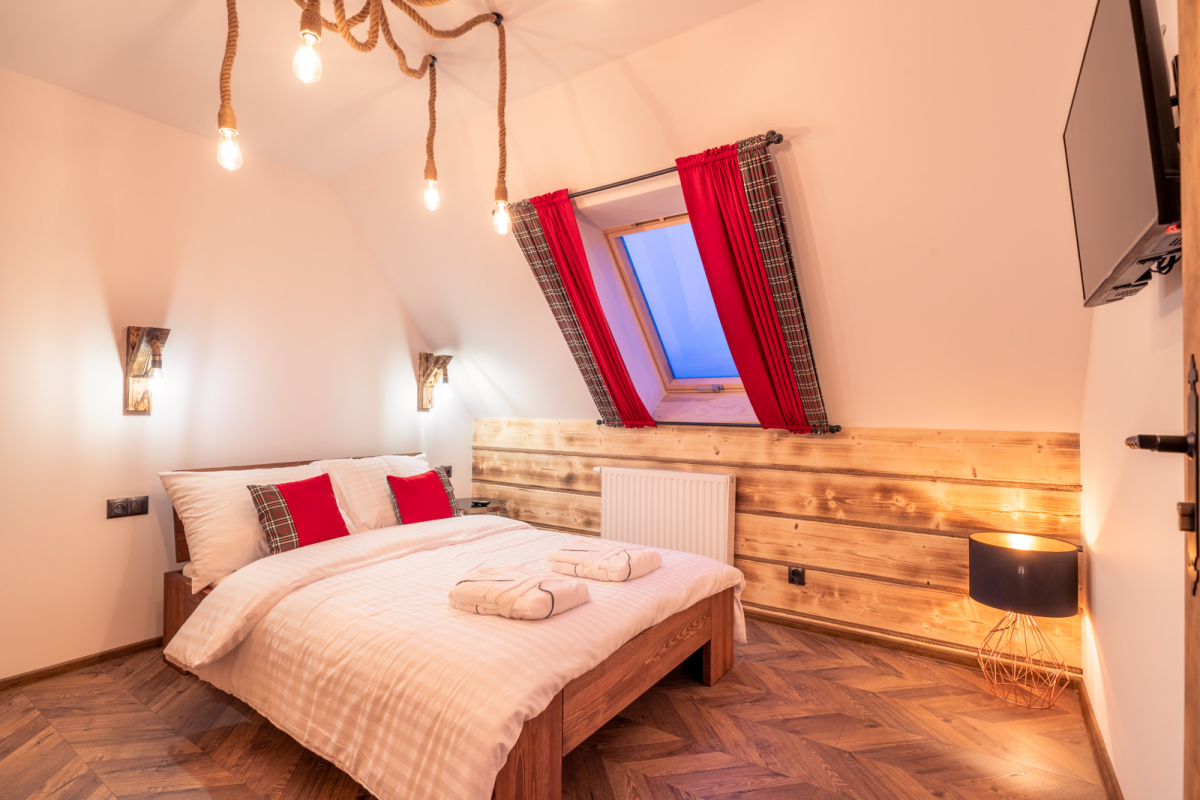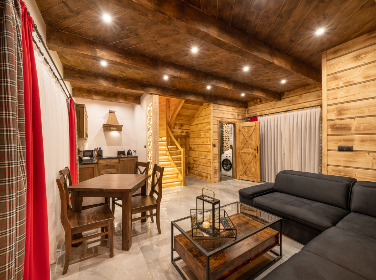 Surrounded by forest and a river, the location is peaceful yet convenient — just 9 km from Zakopane, 5 km from Tatra National Park, and close to hiking, cycling, and ski trails.