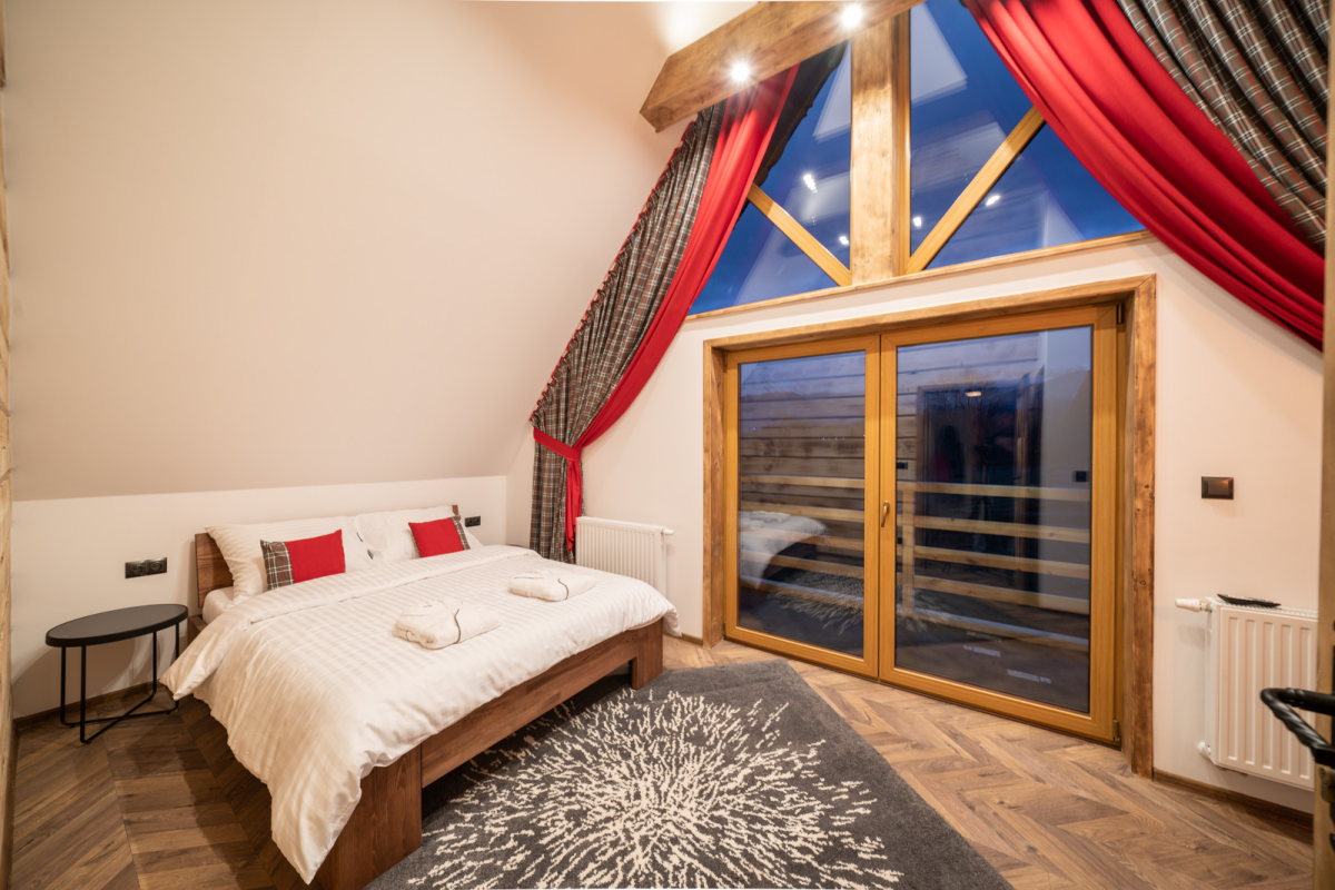 Willa Polakówka offers the perfect setting for shared stays, with two villas and 11 bedrooms in total. Each room has its own bathroom and balcony, combining privacy with the warmth of a traditional wooden highlander style.